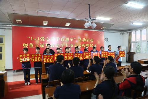 “1+1爱心助学直通车”活动启动暨董元斌奖教助学专项基金揭牌仪式在安阳市第五中学举行